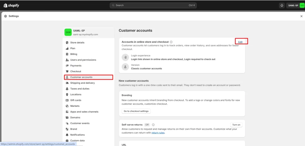 - From the left panel, select Customer accounts. Click on Edit.